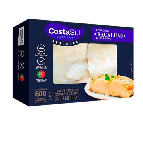 BACALHAU LOMB DESSALGADO C/ PELE COSTA SUL PACOTE 600G