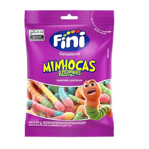 BALA DE GELATINA FINI MINHOCAS AZEDINHAS PACOTE C/ 80G